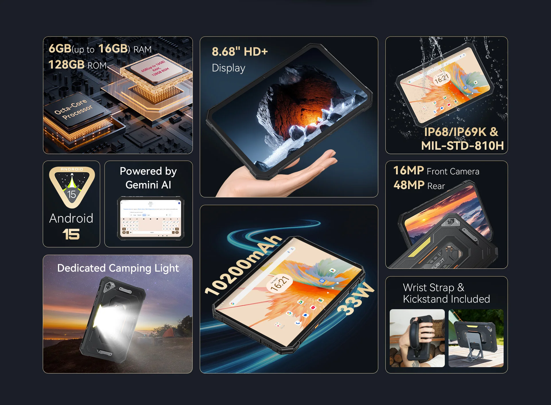 CUBOT TAB KingKong Mini — это настоящий «броневик» в мире компактных планшетов. Созданий для работы в строжайших условиях, он получил усиленный корпус с прорезиненными вставками и заглушками на портах. Устройство сертифицировано по самым высоким стандартам защиты: IP68 и IP69K (полная пыленепроницаемость и возможность погружения в воду), а также военным стандартом MIL-STD-810H. Это означает, что планшет не опасается падений с высоты до 2 метров, экстремальных температур и мытья под давлением горячей водой. Его габариты позволяют удобно удерживать устройство даже одной рукой, что делает его идеальным спутником для военных, строителей и экстремалов.