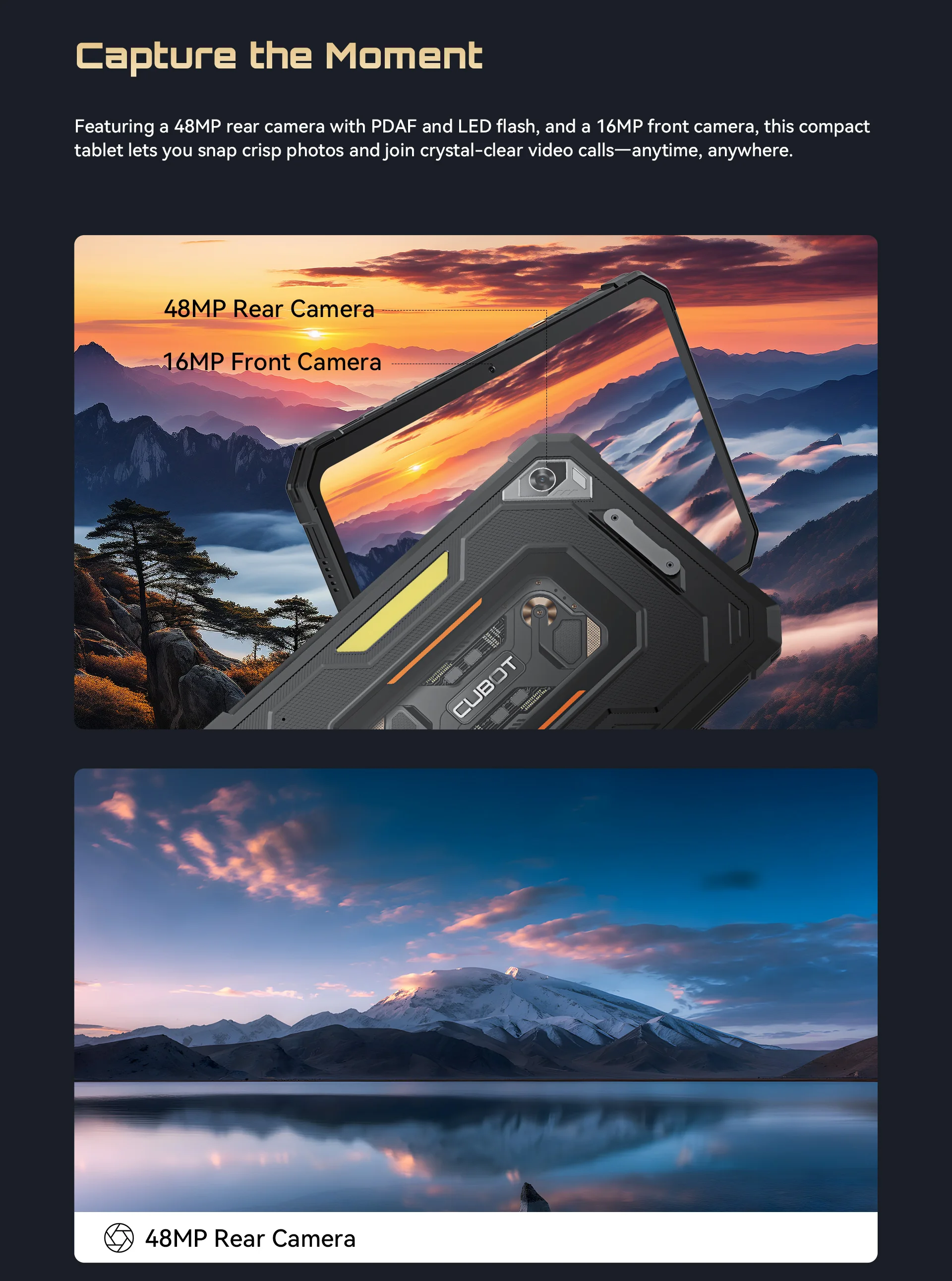 Необычно для сегмента защищенных планшетов KingKong Mini получил мощную основную камеру на 48 МП. Она позволяет делать четкие фотодокументы или снимки местности даже при недостаточном освещении. Для видеосвязи и селфи установлена фронтальная камера на 16 МП, поддерживающая функцию разблокировки лицом (Face ID). Это обеспечивает высокое качество изображения во время конференций в Zoom или звонков родным через мессенджеры.