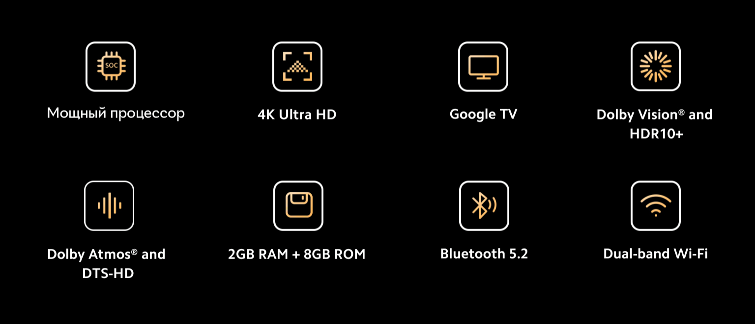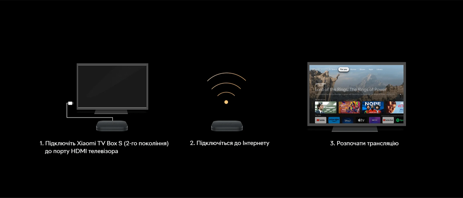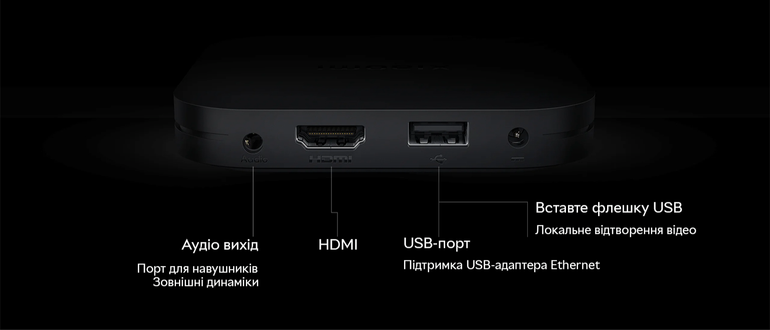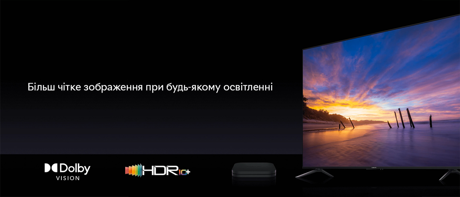 Медіаплеєр нового покоління Smart TV Xiaomi TV Box допоможе вам у пошуках цікавого контенту на будь-який смак. Модуль Bluetooth 5.2 спрощує під'єднання до медіаплеєра різних пристроїв, дводіапазонний Wi-Fi забезпечує передавання даних на надшвидкості. Ви насолоджуватиметеся кожним переглядом завдяки формату зображення 4K Ultra HD з підтримкою Dolby Vision з HDR10+ і Dolby Atmos.