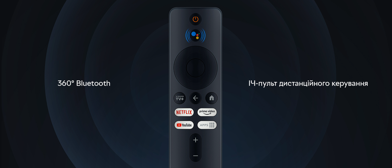 Зручний пульт дистанційного керування 360° Bluetooth з інтуїтивно зрозумілими кнопками допоможе керувати пристроями під будь-яким кутом. Вбудований ІЧ-порт дає змогу регулювати гучність і керувати живленням телевізора або звукової панелі, під'єднаних до медіаплеєра.