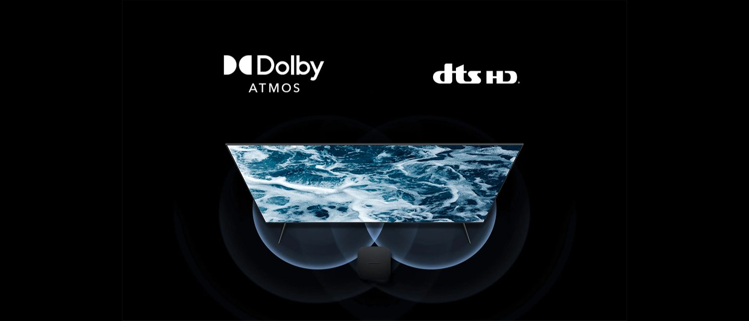 Передова технологія просторового звучання Dolby Atmos перетворює вашу вітальню на зал кінотеатру, наповнюючи простір потужним чистим звуком, який переносить вас прямо в епіцентр подій. Підтримка DTS-HD робить звук деталізованішим і глибшим, посилюючи відчуття живої присутності.